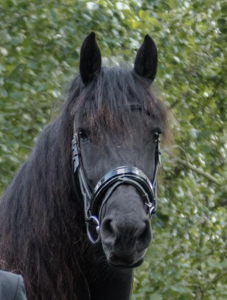Midsimmer is een knappe fries die erg van aandacht houdt. Met een borstelbeurt en wat knuffels maak je haar dan ook erg blij. Midsimmer was vroeger managepaard, maar staat nu alweer een hele poos bij ons als solleypaard. Als ze aan het werk mag, is ze erg voorwaarts en loopt ze het liefst zo hard mogelijk. Als een echte fries heeft ze natuurlijk een volle staart een mooie manen. Deze zijn uitermate geschikt om te oefenen met vlechten.