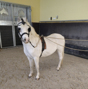 Snowball is onze kleine pony. Ondanks haar kleine formaat is het een pittige tante. Ze is erg geliefd in het onderwijs en wordt daarbuiten gereden door kinderen en loopt meerdere keren per week aan de lange lijnen. Ze is erg enthousiast met werken, maar vindt gekke dingen nog wel spannend. Omdat Snowball wel erg onderzoekend is, is het super leuk om een schriktraining met haar te doen.