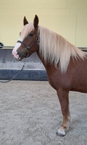 Nicky is een lieve kleine tinker van 4.5 jaar oud. Ze houdt ontzettend van aandacht en poetsen en met al dat behang valt er ook genoeg te doen! Ze was bij haar vorige huisje al beleerd onder het zadel, dus dat hebben wij lekker verder opgepakt. Ze wordt nu een paar keer per week gereden en daarnaast wordt er ook met haar gewerkt vanaf de grond. We hopen dat ze het ook leuk gaat vinden om voor de wagen te lopen zodat we er met haar weer een menpony bij hebben!