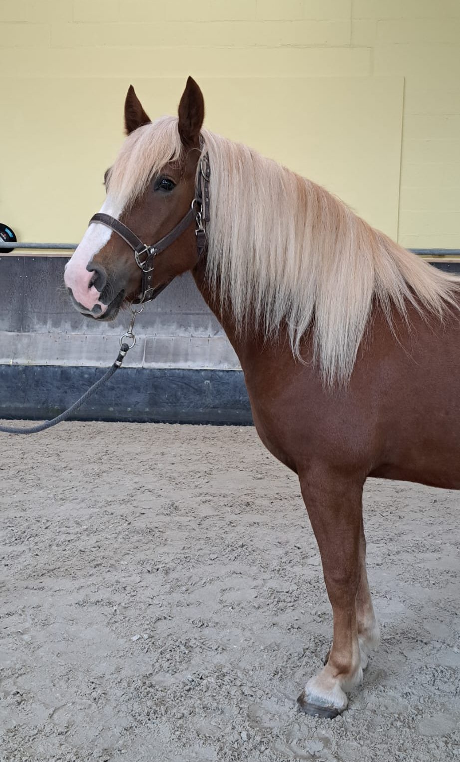 Met haar 3.5 jaar is Izzy ons jongste Solleypaard. Ze is dan ook nog niet beleerd onder het zadel, maar we hopen daar deze zomer mee te kunnen beginnen. Voorlopig wordt er vooral lekker met haar aan de hand gewerkt. Izzy is ontzettend lief naar mensen en een echte knuffelkont. Ze houdt dan ook van uitgebreide borstelbeurten met heel veel kriebels tussendoor. Daarnaast is ze verzot op eten en als echte merrie laat ze ook duidelijk merken dat de rest maar even op hun beurt moet wachten bij de hooiruif. In het begin moest ze nog wat wennen aan het leven als onderwijspony, maar inmiddels doet ze dat superbraaf!